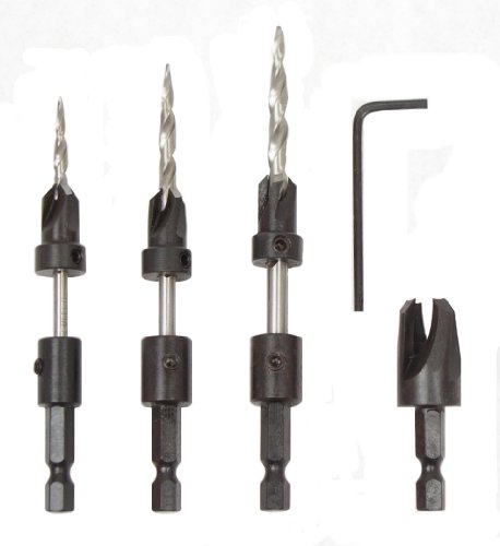W L Fuller 10349003C Set of 3 Countersinks with Matching Quick Change HSS Taper Point Drills are proudly made in the USA and are the best tools on the market today to pre-drill the head shank and threads of screws. This set includes 3/8-Inch cutting diameters in the most popular sizes #6, #8, and #10. The countersink, designed to cut clean and hardened for long wear, is held in place with 2 hex-socket screws that should be set into the flutes of the drill. The taper point drill is made from quality high speed steel and has 1/4-Inch hex power quick change adapter for the TPS-Lock System. The hardened 3/8-Inch diameter quick change plug cutter makes smooth chamfered plugs for easy starting in predrilled holes. The plug remains in the board and can be broken out with a screwdriver or the board can be sawed to free the plug. The Fuller pre-drill/plug system makes drilling, driving and plugging easier and assures the best possible holding power and the tightest fit.